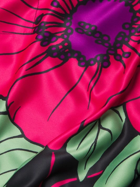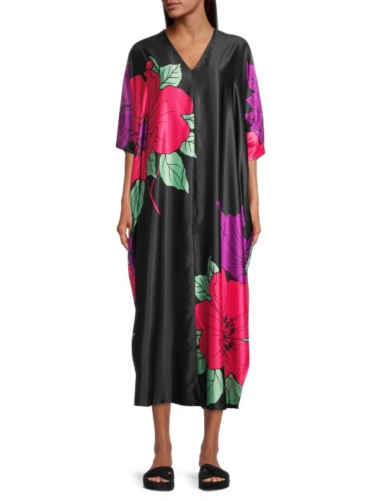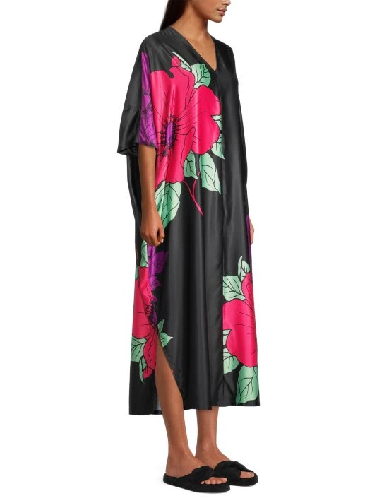 Crafted of a lustrous satin, Natori’s oversized Exotica midi-dress is elevated by a large floral print and breezy side slit.