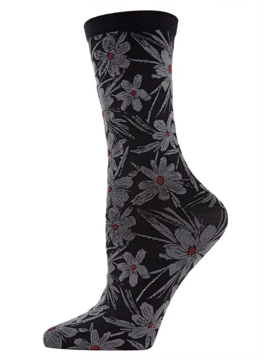 Stylish fashion Crew style sock with an abstract floral design and luxurious feel. Match it with a fabulous outfit or a fun-flirty casual look.