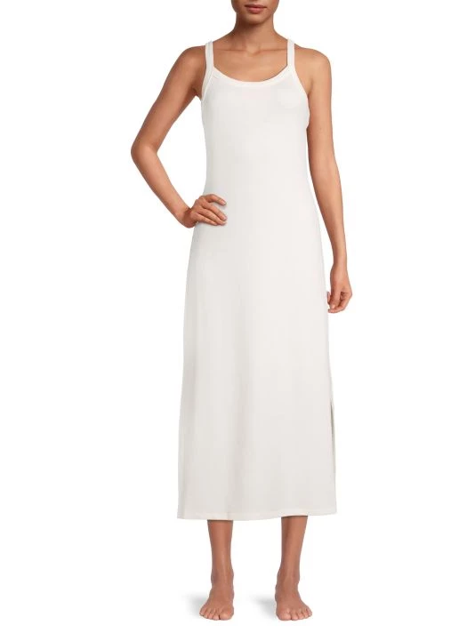 Composed of knit, Natori’s Fuji dress is styled with a scoopneck and side slits.