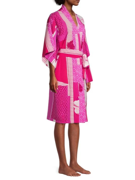 Crafted of floral printed satin, this Natori gown is designed in a longline silhouette.