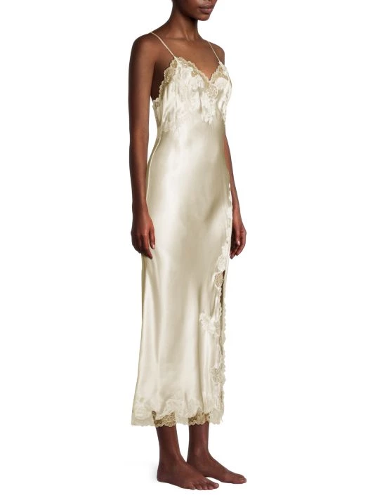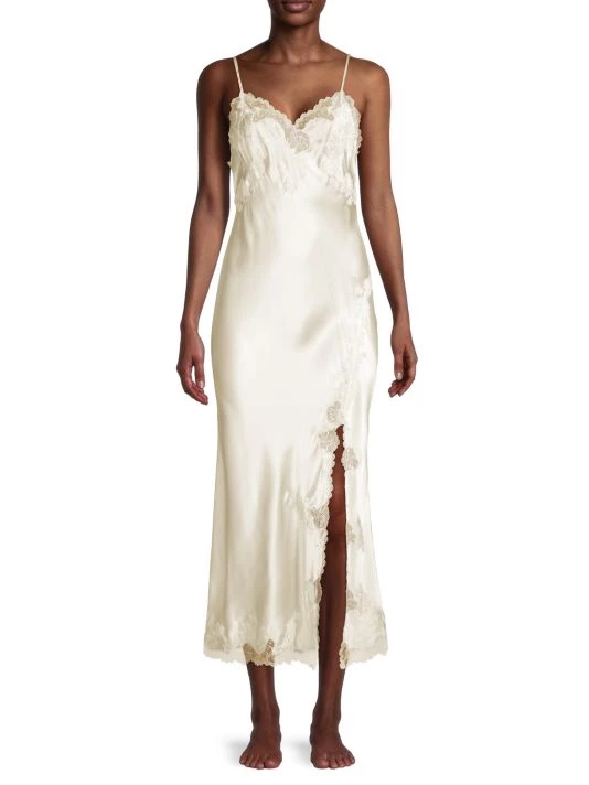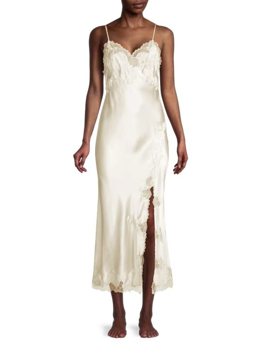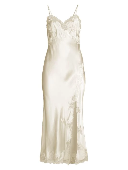 Embroidered with dainty lace, this midi dress exudes elegance in the form of silk.
