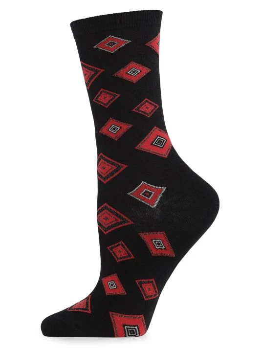 A layered diamond pattern sits askew on these soft fashion socks, infusing them with unexpected style.