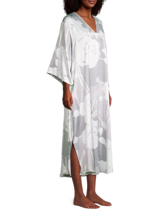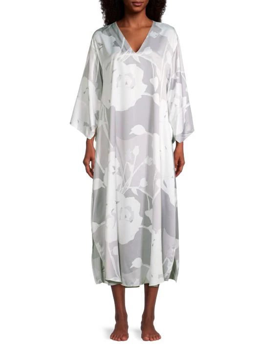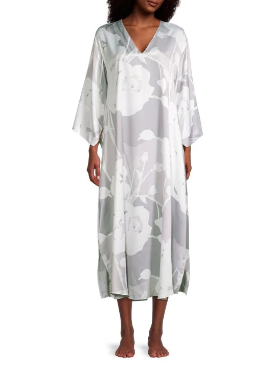 This romantic nightgown is finished in a soft sating, adorned with oversized rose prints and a sharp V-neckline.