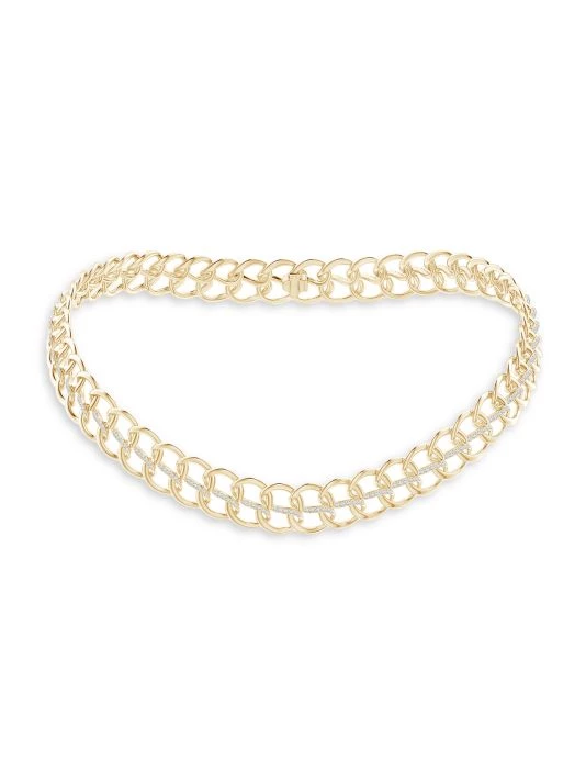 From the Shangri-La: Yin Yang Collection. Embracing modern and traditional style, this stunning necklace is crafted of solid 14K gold with stacked curb chain links emphasized by glistening black and white diamonds.