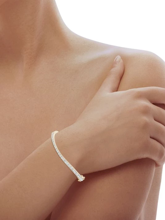 From the Shangri-La: Brushstroke Collection. This stunning bracelet features a slender, curved silhouette half-encrusted with glittering diamonds for a hint of refined glamour.