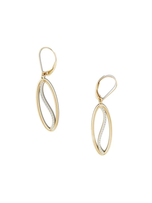 Made of polished 14K yellow gold, Natori’s earrings each feature an oval Yin-Yang-inspired drop accented with glittering white diamonds. This elegant pair is from the brand’s Shangri-La Collection, a line of jewelry distinguished by its harmonious blend of traditional and contemporary design elements.