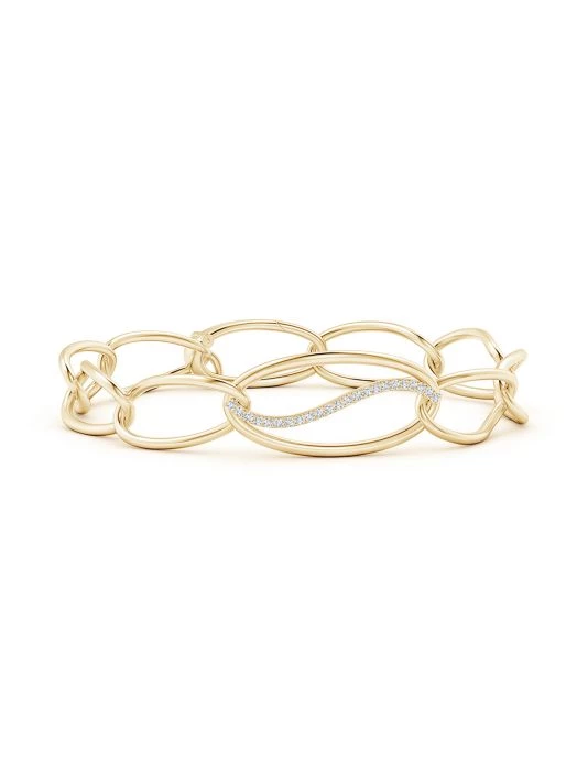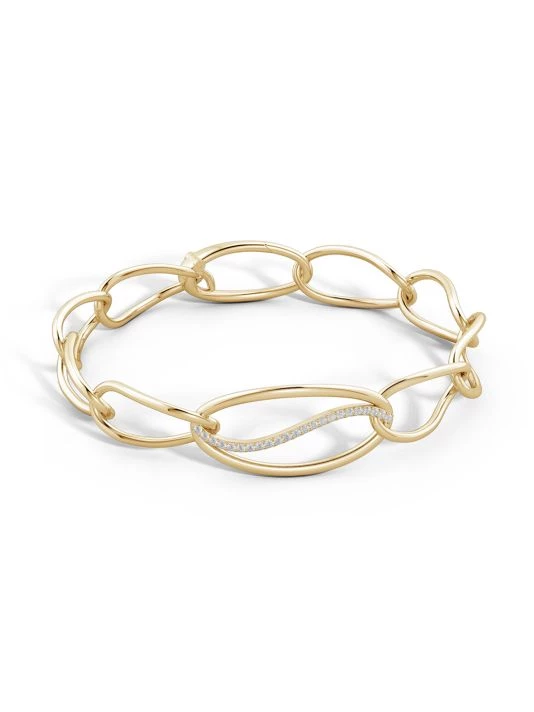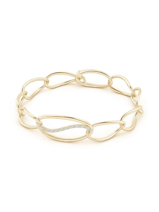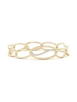 Made of polished 14K yellow gold, Natori’s oval chain bracelet features a single Yin-Yang-inspired link accented with shimmering white diamonds.This stunning piece is from the brand’s Shangri-La Collection, a line of jewelry distinguished by its harmonious blend of traditional and contemporary design elements.