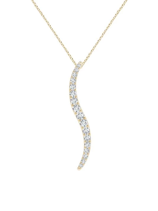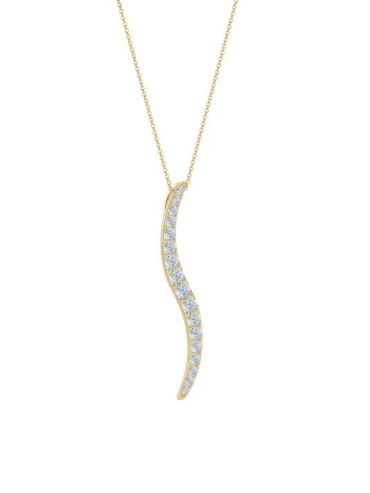 From the Shangri-La: Brushstroke Collection. This 14K gold necklace showcases a slender, curved pendant dusted in dazzling diamonds and suspended from a delicate chain.