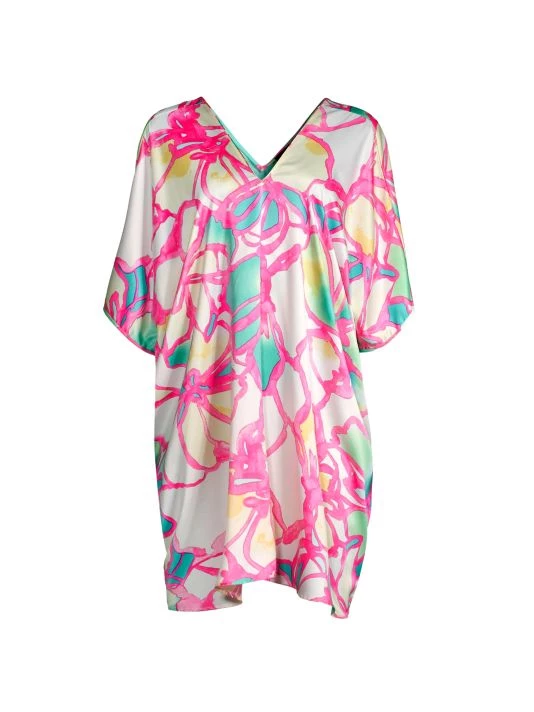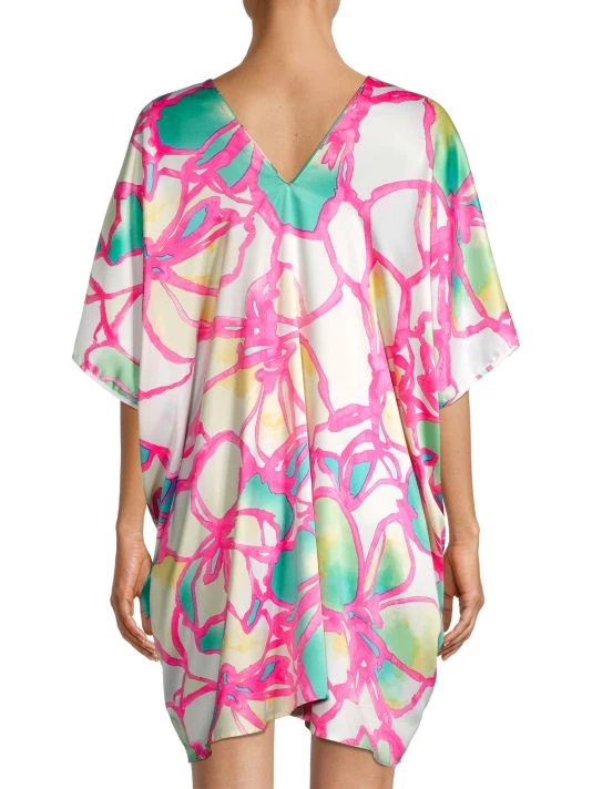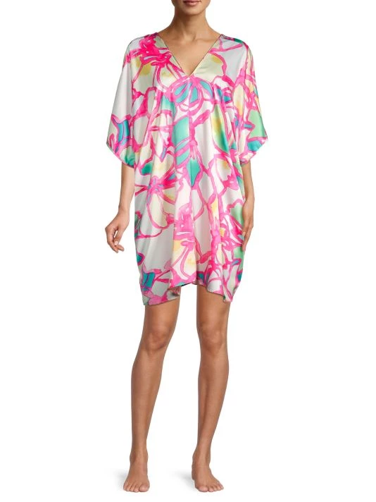 This dynamic Taisho nightgown from Natori showcases a bright floral motif. Flowing elegantly from a V-neck, this style focuses on a relaxed silhouette.