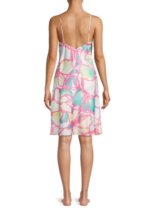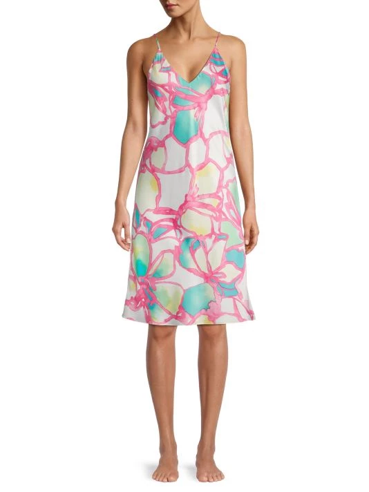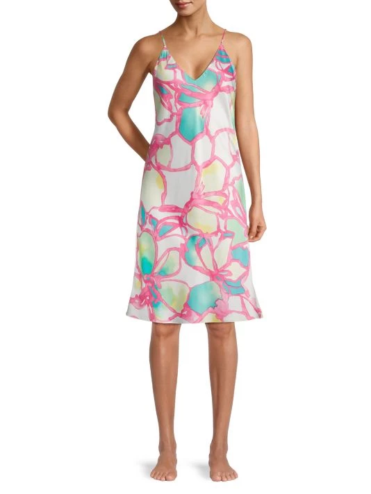 Natori’s Taisho printed slip dress is crafted of satin, featuring a V-neck and adjustable straps.