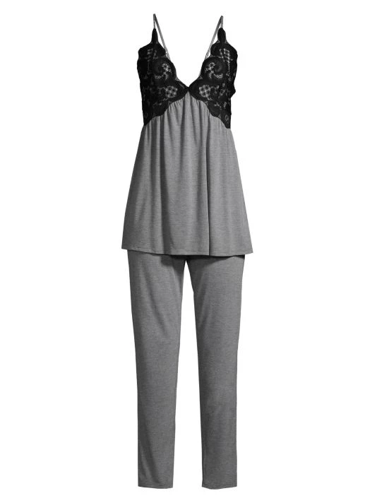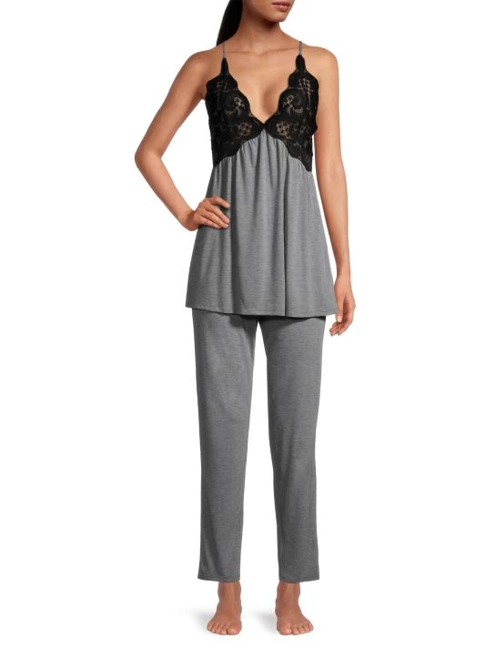 From the Obsession Collection. Two-piece cami pajama set detailed with contrasting lace. 65% modal/35% polyester. Machine wash. Imported.