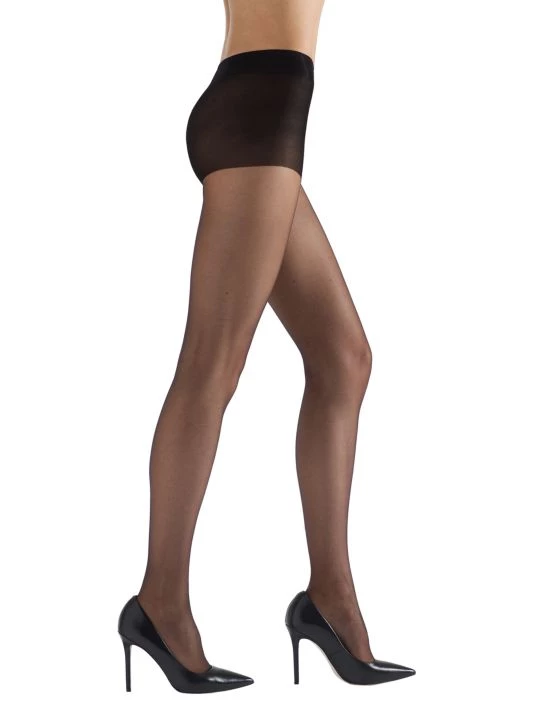 Minimalist sheer tights with transparent leg yarns to enhance skin tone and 8 denier appearance.