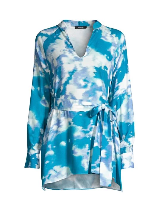 Tunic with a beautiful artistic watercolor print and waist defining belt.