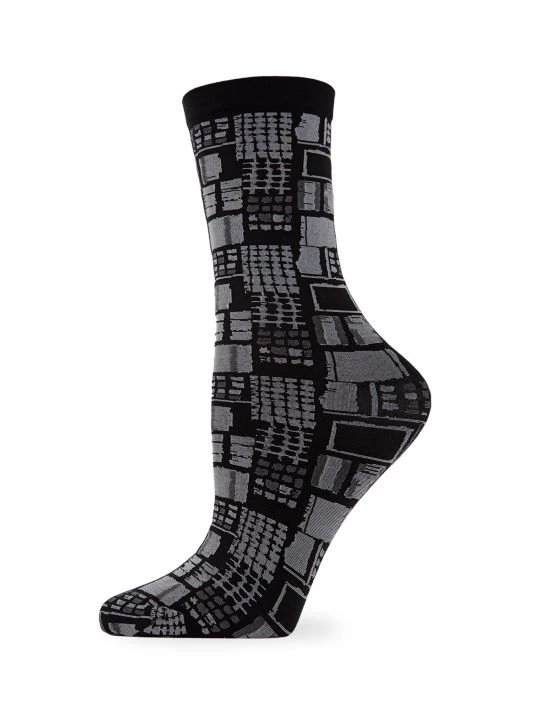 Bold geometric pattern in tonal hues makes a subtle fashion statement.